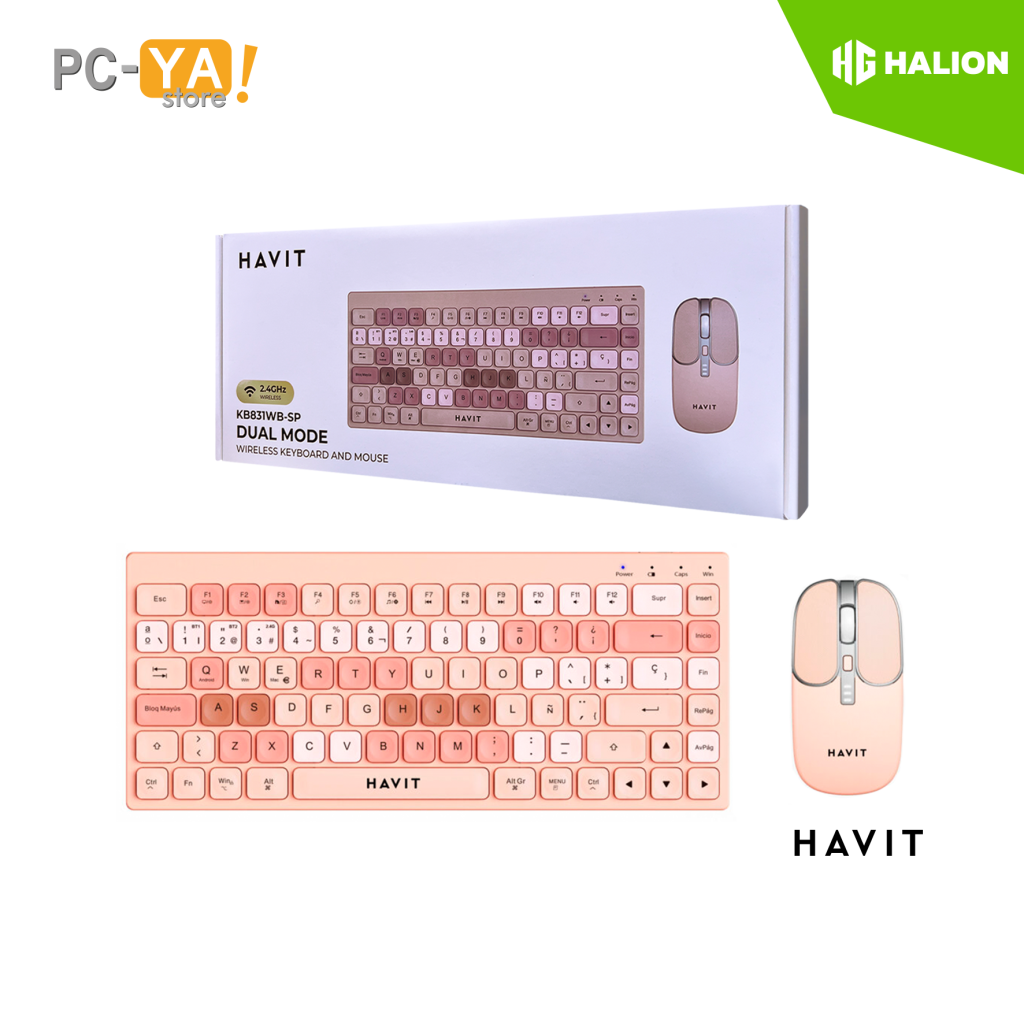 KIT OFFICE TECLADO Y MOUSE INALAMBRICO/BLUETOOTH HAVIT KB831WB-SP ROSA (WINDOWS, ANDROID, APPLE MAC)