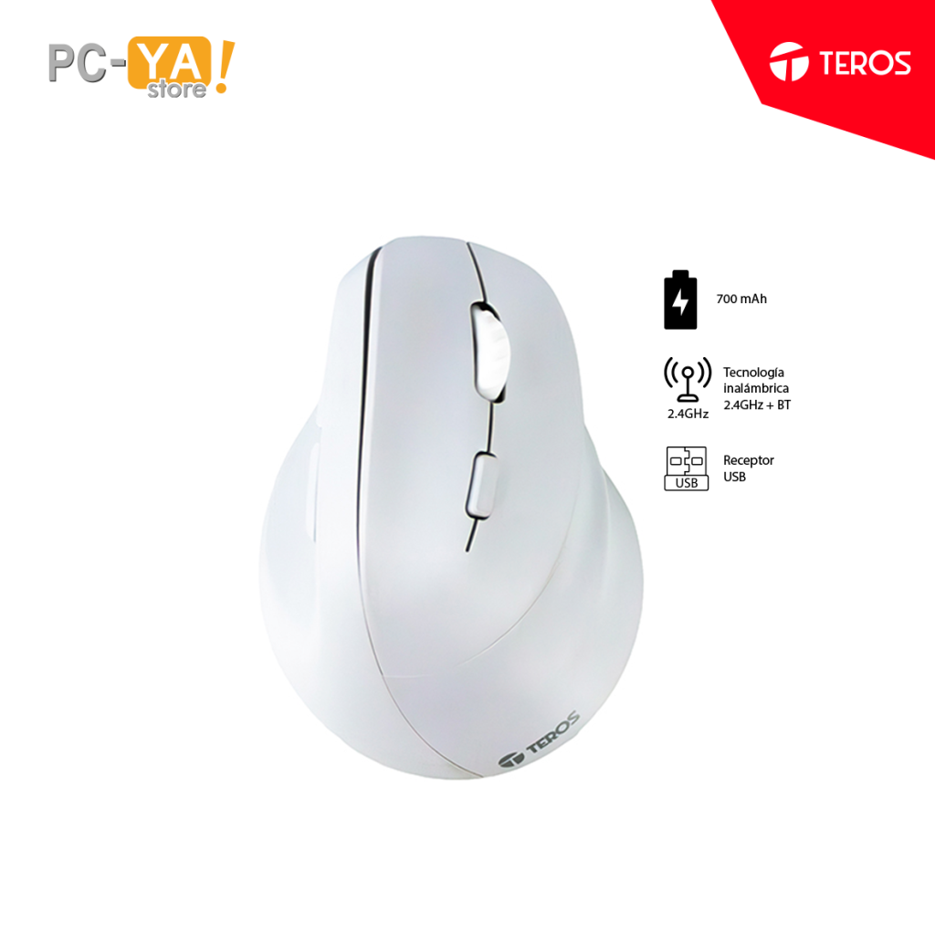 MOUSE VERTICAL TEROS INALAMBRICO + Bluetooth TE-1236S RGB BLANCO 6 botones con rueda RECARGABLE