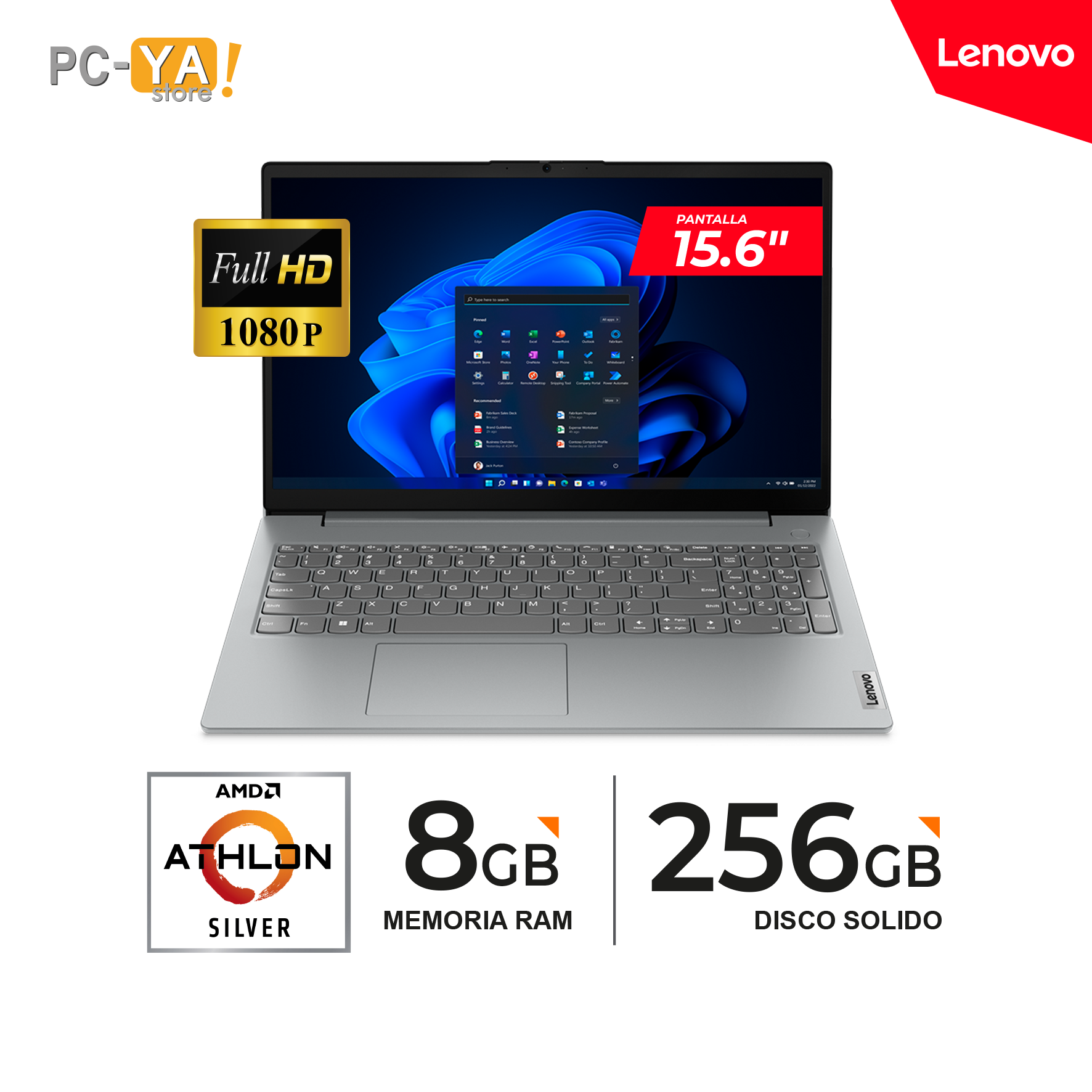 LAPTOP LENOVO V15 G4 AMN 15.6″ FHD TN AMD Athlon Silver 7120U 2.4/3.5GHz 8GB 256GB No Incluye Sistema Operativo